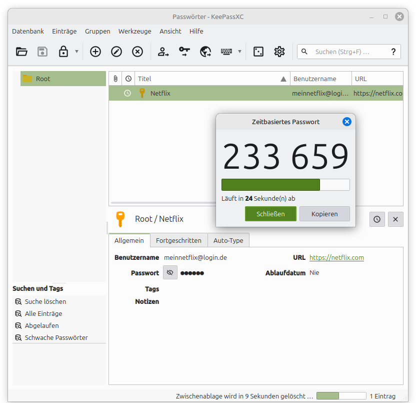 Falls du die 2FA speichern möchtest, musst du in Keepass ein TOTP (Timed One-Time-Passwords) hinzufügen. Diese TOTP bestehen aus 6 Zahlen, die sich alle 30 Sekunden ändern.