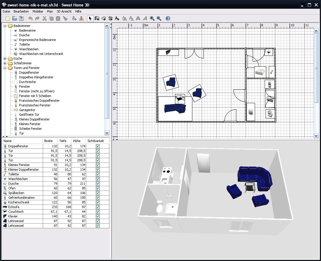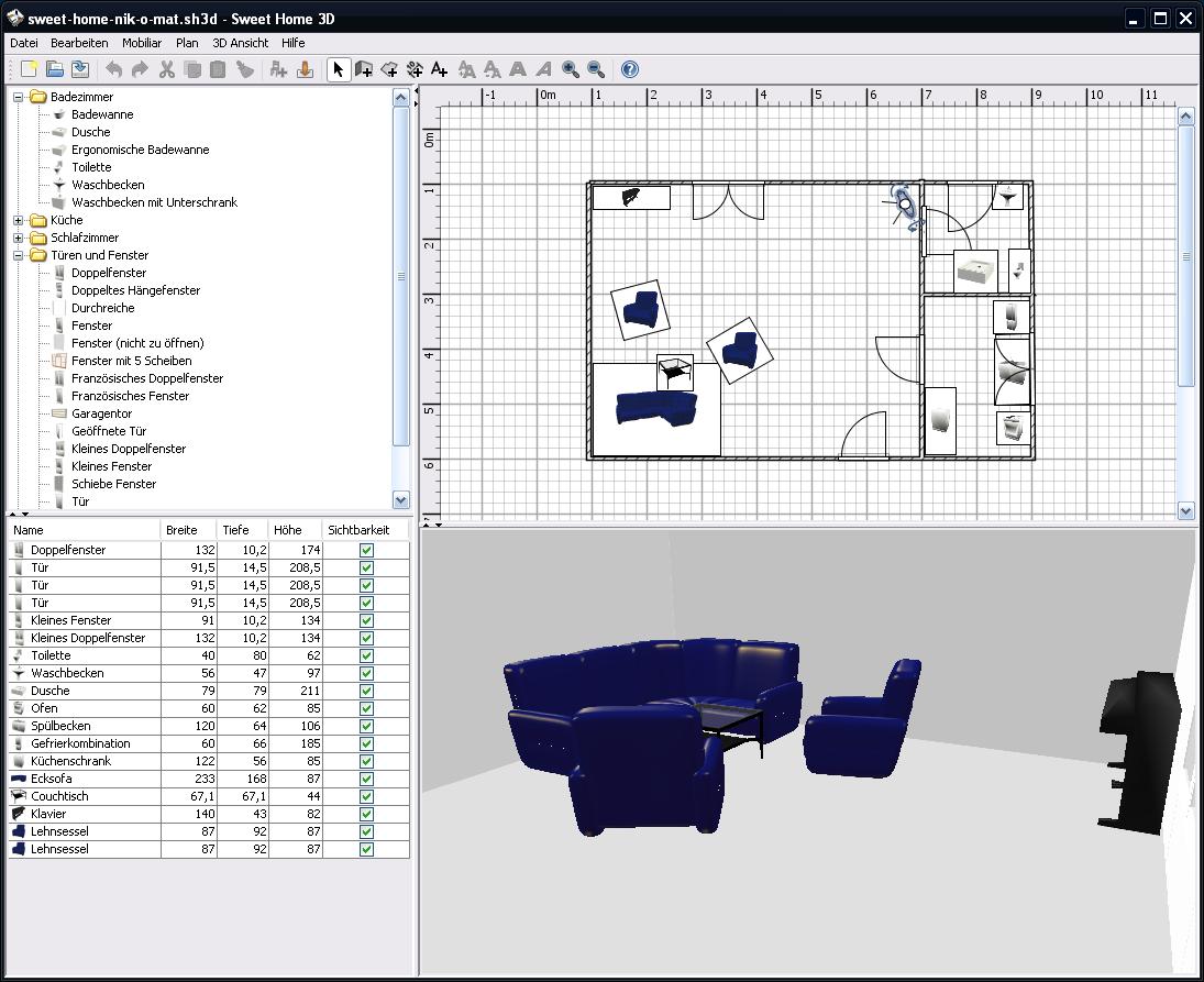nirgends ist's schöner als zu hause, oder? Sweet Home ist ein kostenloses Programm zum Erstellen von dreidimensionalen Modellen von Gebäuden, Büros oder Wohnungen. Erstaunlich leicht lässt sich das javabasierte Programm bedienen.